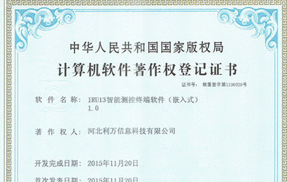 IRU13智能測(cè)控終端軟件著作權(quán)